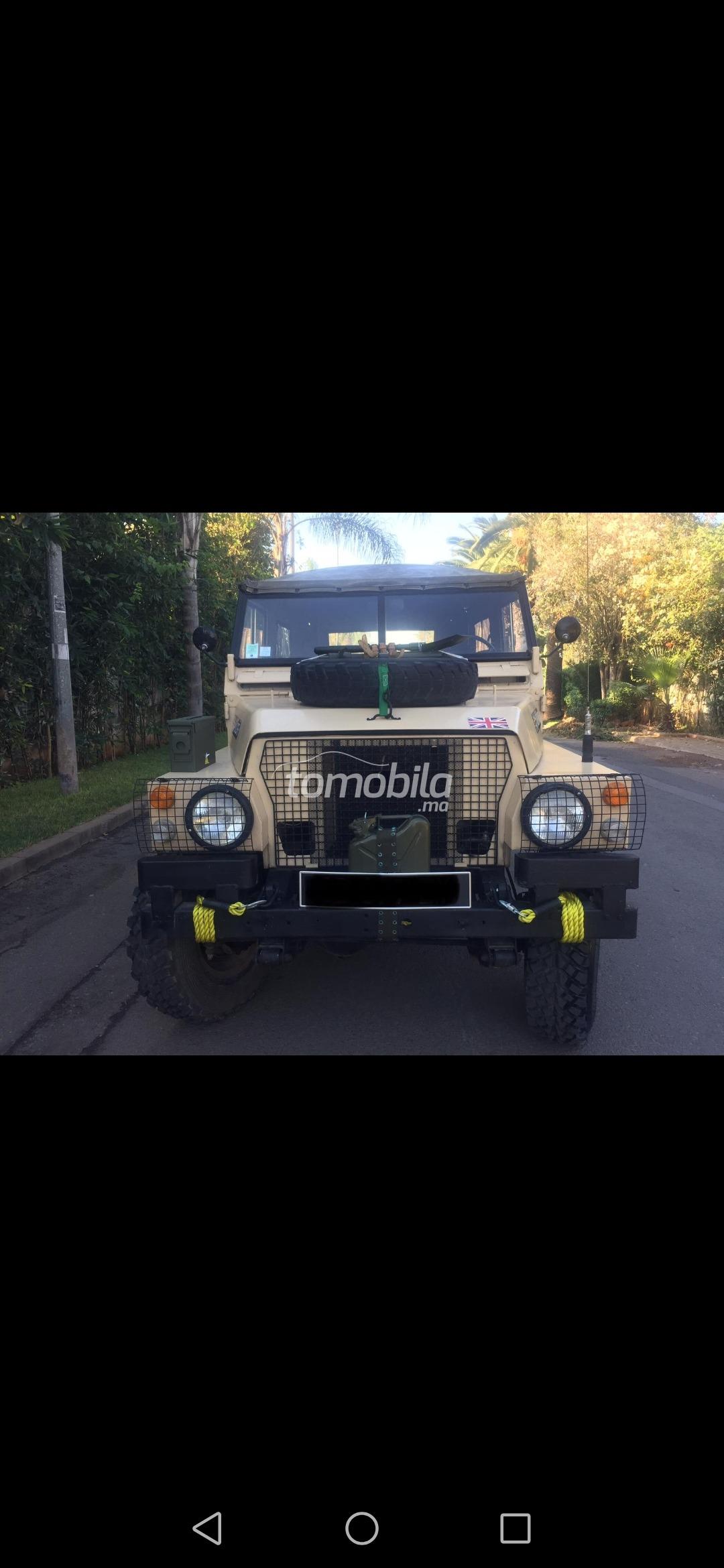 A vendre superbe LAND ROVER de 1976! Série HALF TONE LIGHTWEIGHT DECAPOTABLE VÉHICULE DE COLLECTION !! 4 PNEUS NEUFS !! Moteur essence 2,25 de cylindrée boîte mécanique 4 rapports ainsi que sa boîte courte 4x4.. VÉHICULE DE L’ARMÉE ANGLAISE A SA PREMIÈRE MISE EN CIRCULATION ! Restauration moteur et carrosserie en 2015.vehicule idem jeep willys CJ5 LANDROVER santana jeep dallas m151 DODGE m37 DEFENDER commando Mercedes G wagon hummer hdj79 Wrangler Land Rover DEFENDER VÉHICULE EN PARFAIT ÉTAT MÉCANIQUE PRÊT À CIRCULER. Accessoires et équipements style armée. Modèle unique au Maroc et très rare en Europe. Me contacter par téléphone pour plus d’informations merci.